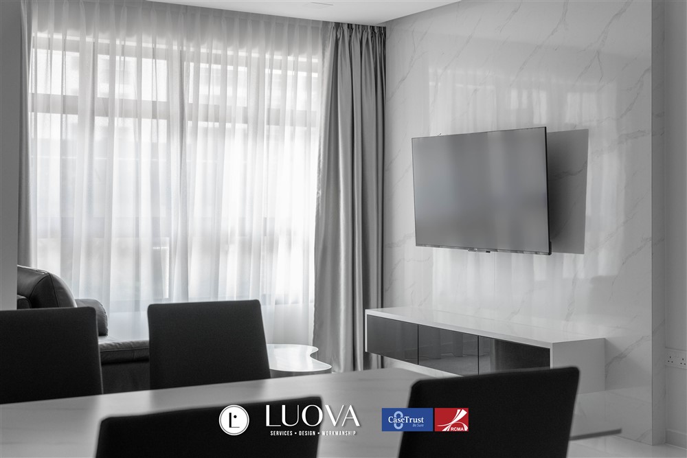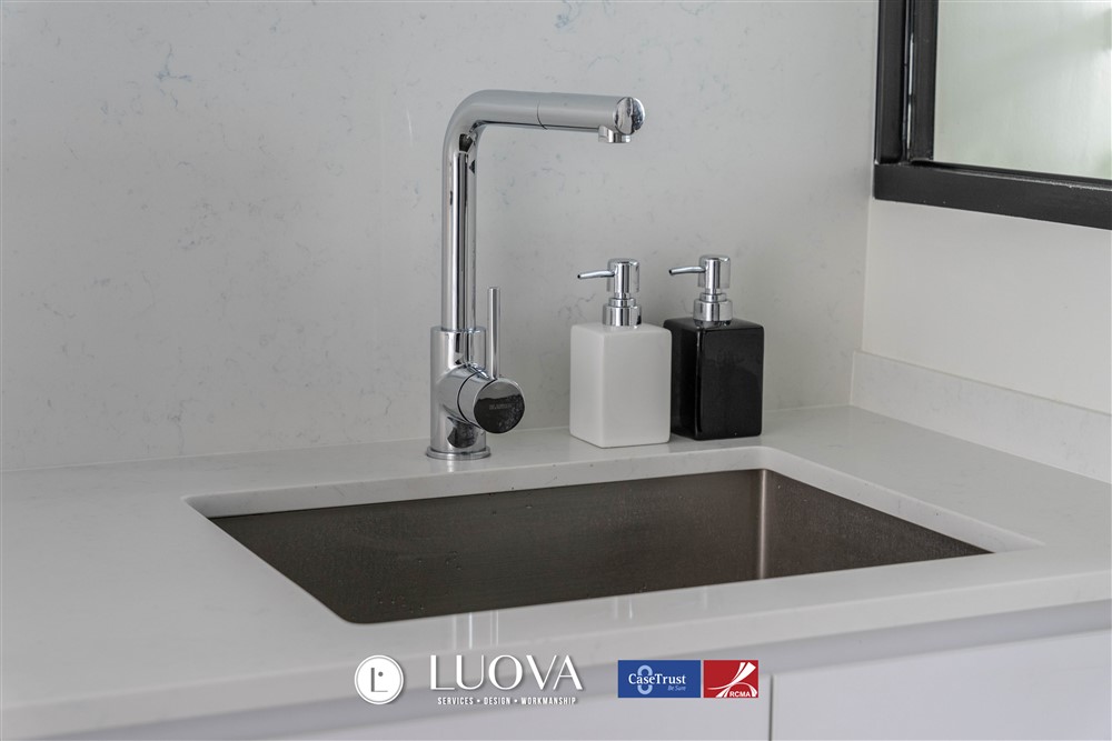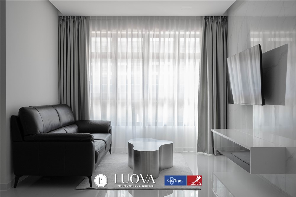 This contemporary home has a modern minimalist design, with clean lines and simple features being its signature components. The subtle colour tone is the perfectly paired with stark accents to give off a refreshing and calming feel that adds sophistication and luxury to the home.
